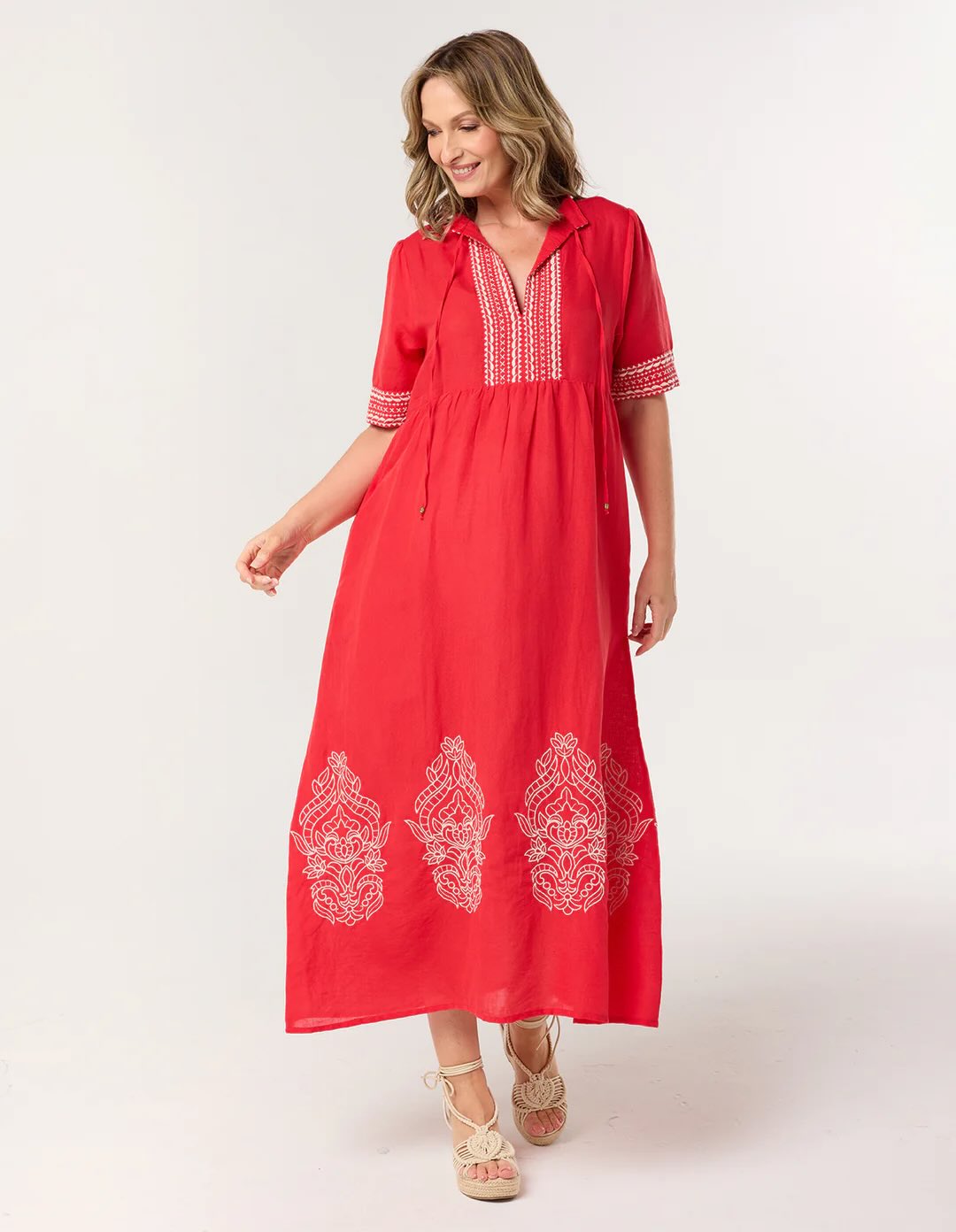 The Edith Dress is made from a medium-weight linen that strikes the perfect balance between structure and softness. The fabric has a gentle drape that gives the skirt movement without feeling heavy. It hangs away from the body, allowing air to circulate — keeping you cool on warm days while still offering a sense of coverage and ease. 🩷💙 ❤️